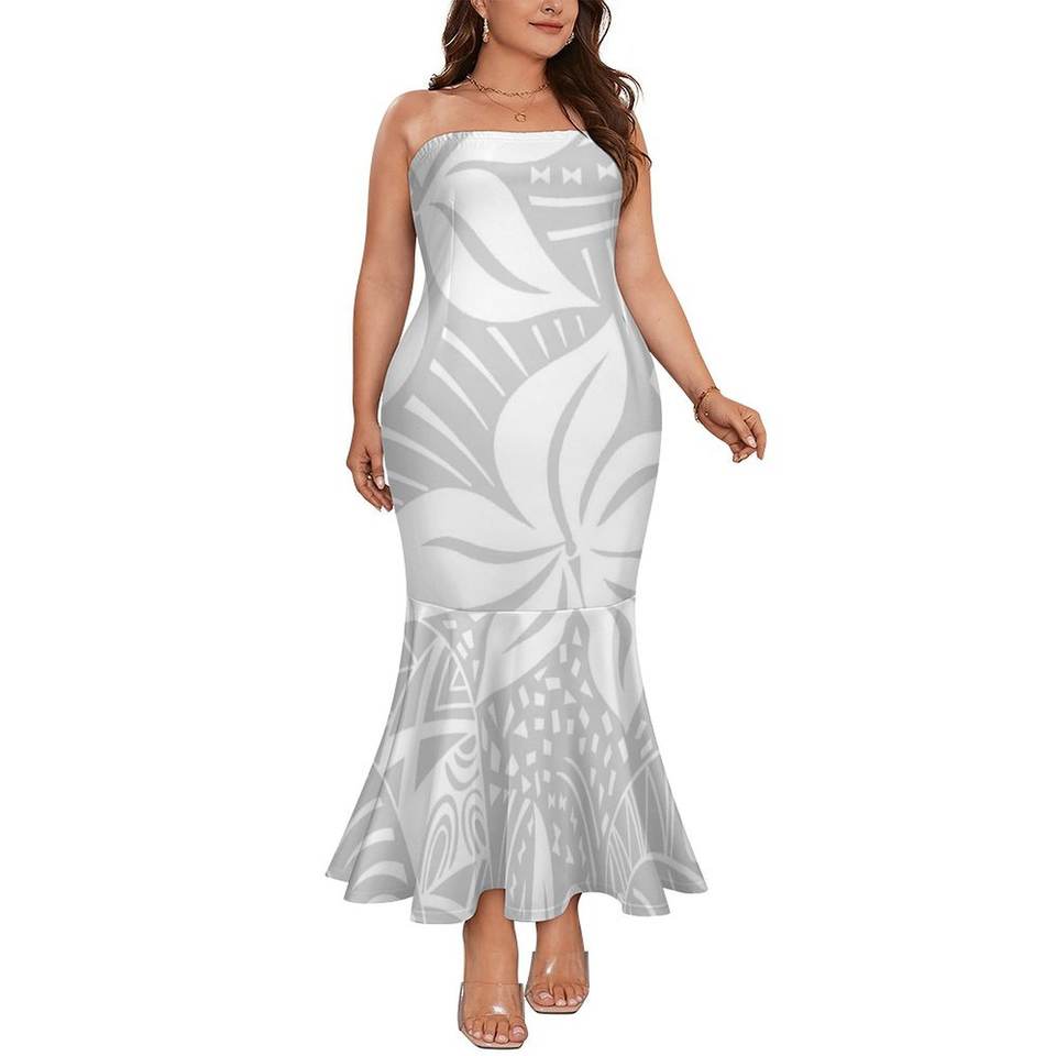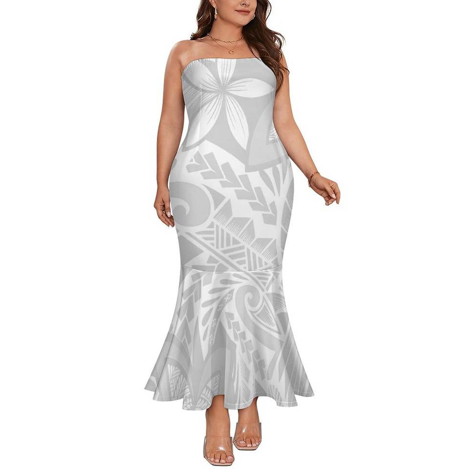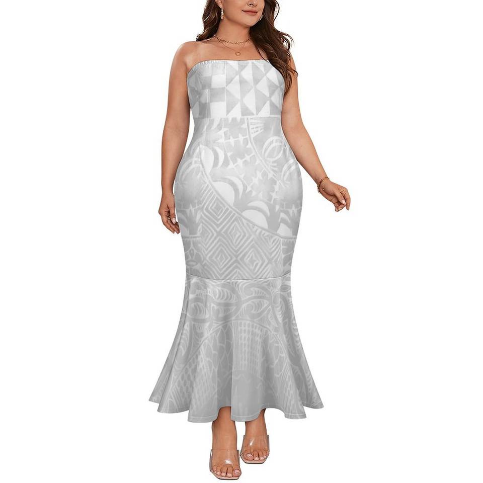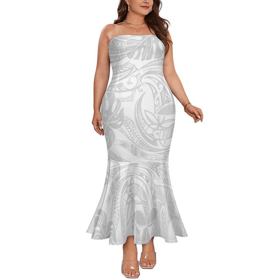 Bianco Sunday lunga tromba senza spalline sirena Sexy polinesiano samoano stile tribale Personaliity moda lavabile lungo fino al pavimento