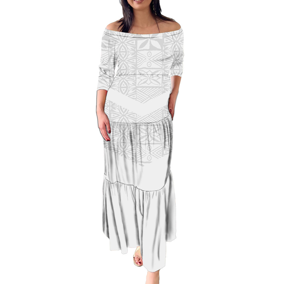 White Sunday One Shoulder Tiered Dress Ladies Anti-rughe 2/3 Sleeve Tapa Design polinesiano eleganti abiti da sera a coda di pesce