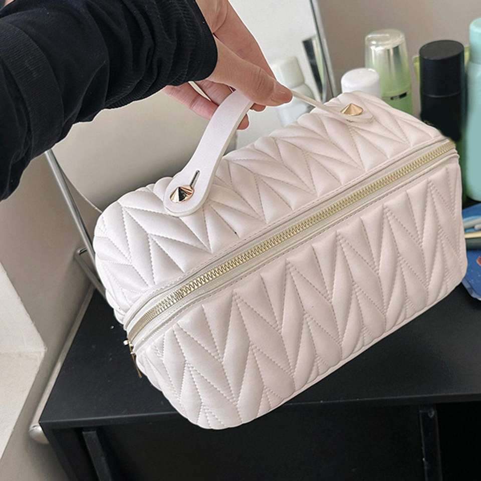 White Travel Cosmetic Organizer Pouch for Business Trip Hotel Makeup Storage Practical and Convenient Makeup Bag
