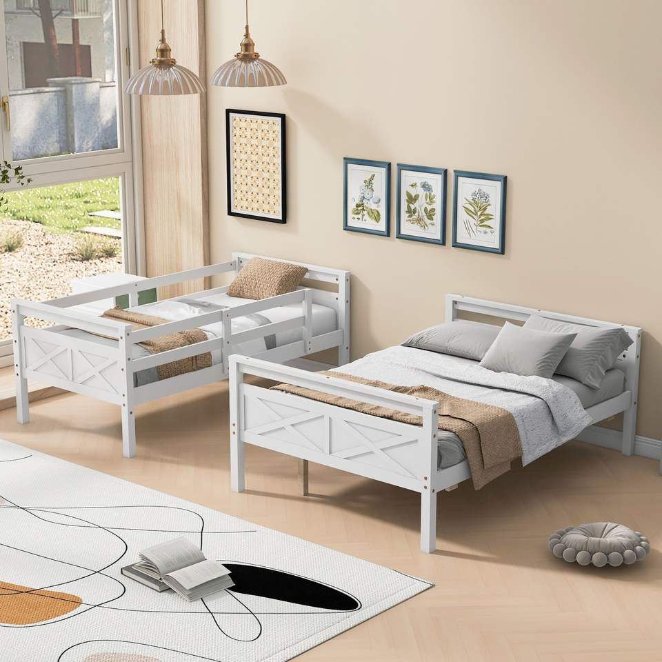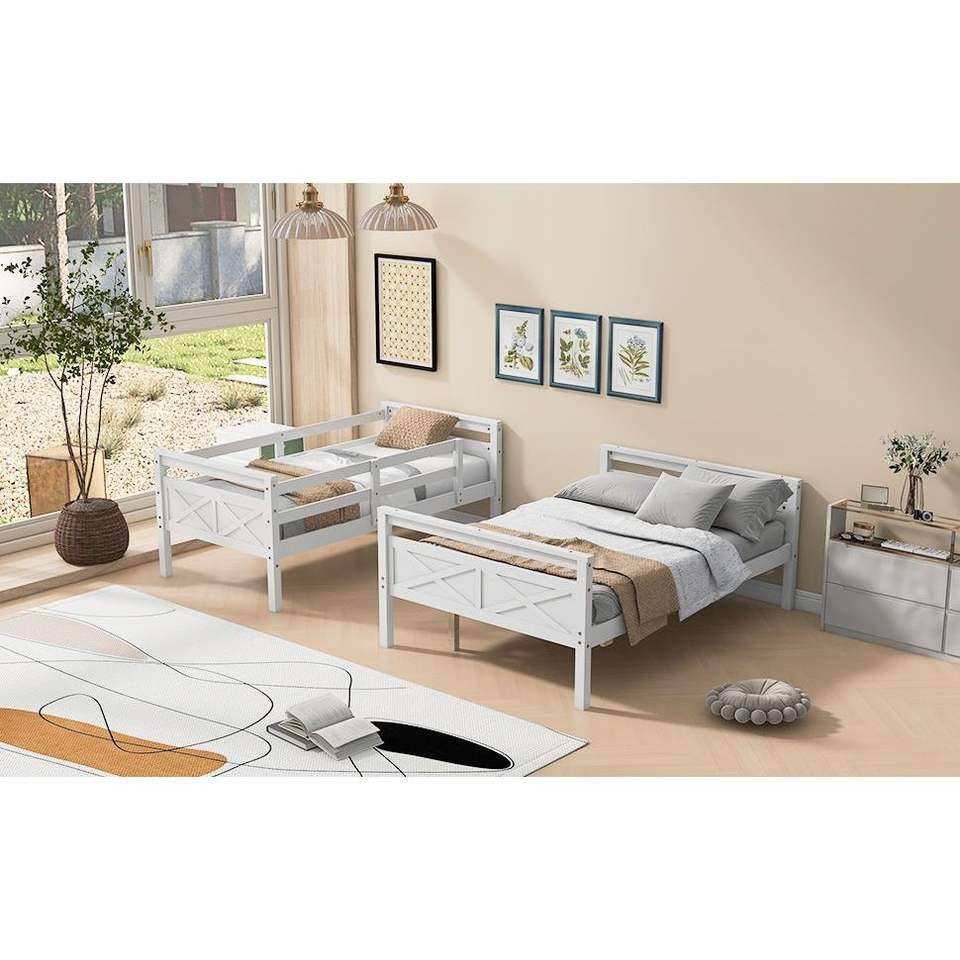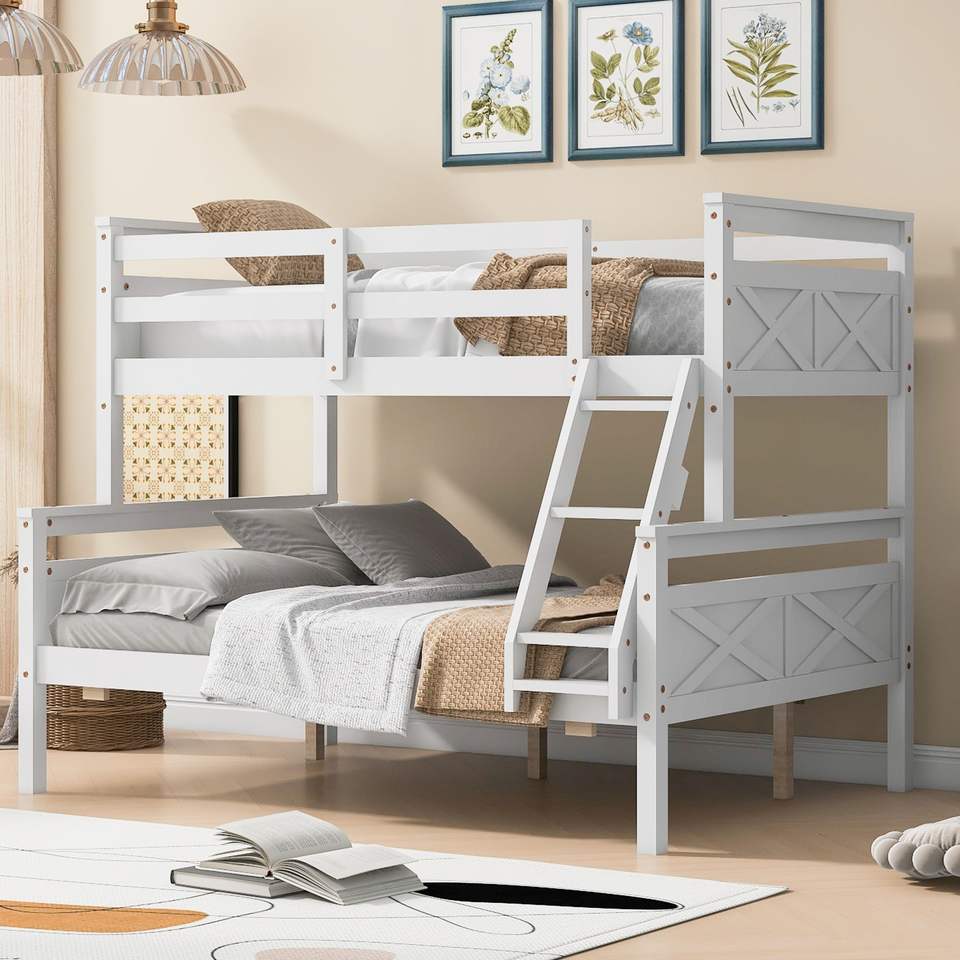 Gemello bianco sopra il letto a castello pieno con la scala ed il Guardrail di sicurezza per la camera da letto