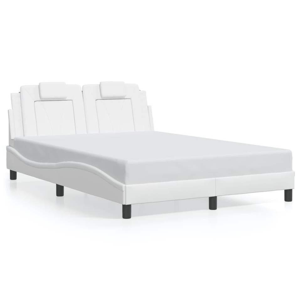 Letto Imbottito Bianco in Ecopelle, Design Moderno e Morbido, Struttura in Legno, Misura Queen