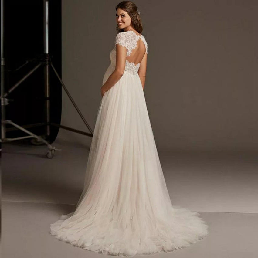 White V-neck Pregnancy Clothes Lace Maternity Evening Dress Pregnant Women Wedding Dress