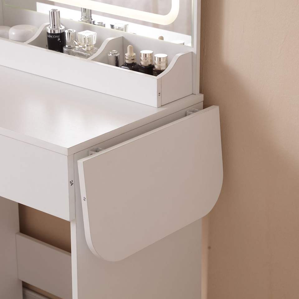 White Vanity Desk Lighted Mirror 3-Mode Power Outlet Makeup Vanity Large Storage Cabinet Adjustable Brightness Stool Bedroom