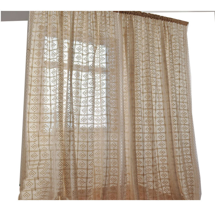 White Vintage Hand Made Crochet and Draw Curtains Crochet Macrame Curtain