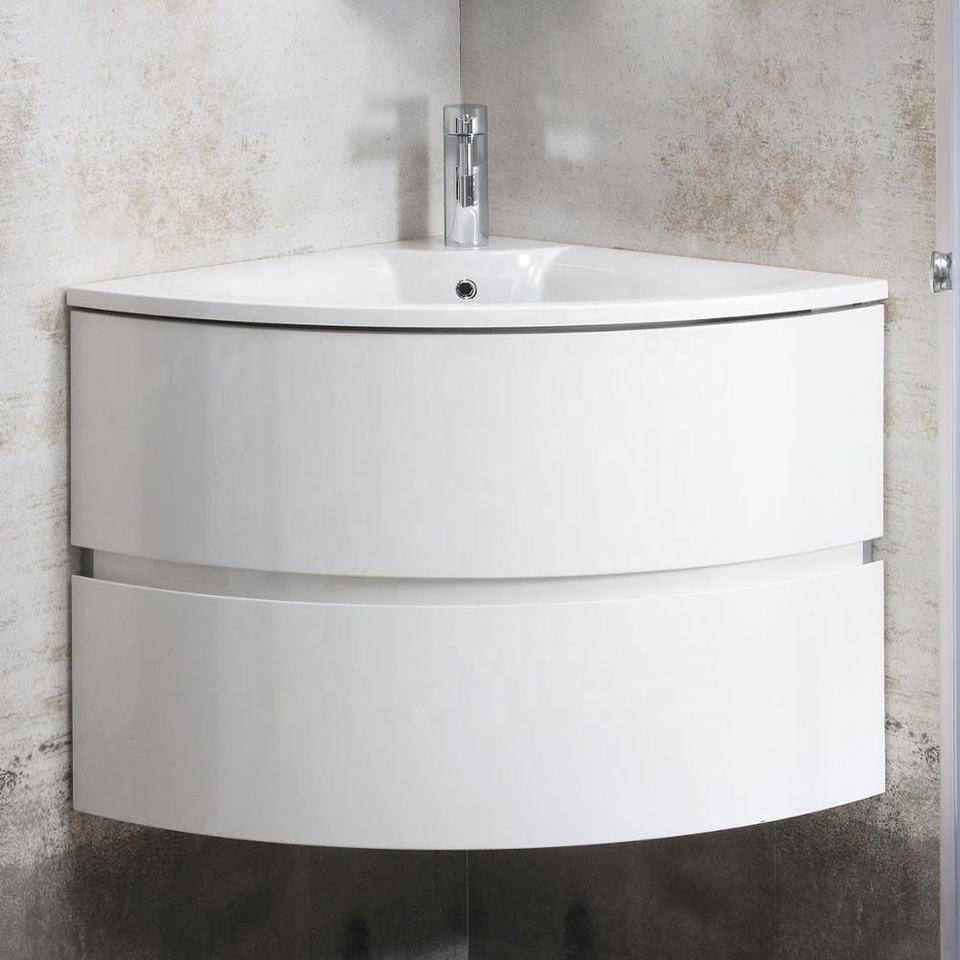 Nome del prodotto:Vanità del bagno ad angolo anteriore curva montata a parete bianca con cassetti