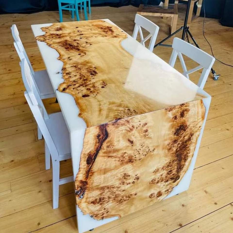 Tavolo da pranzo in legno epossidico a cascata bianca tavolo da cucina in resina epossidica tavolo da pranzo a cascata con bordo vivo