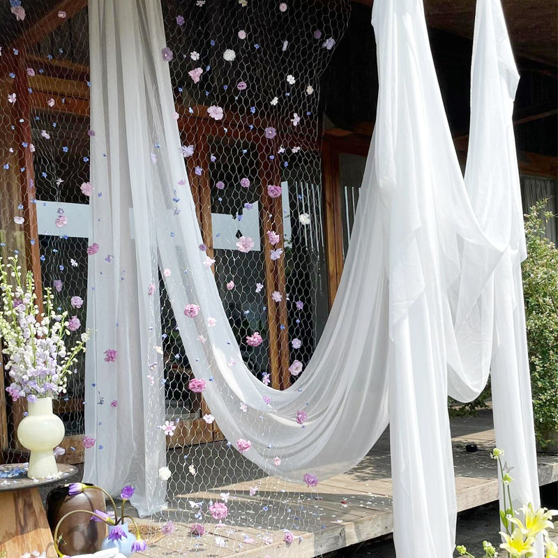 White Wedding Background Fabric Curtain Decoration Forest Chiffon Fabric Arrangement Background Fabric Curtain Ceiling Arch