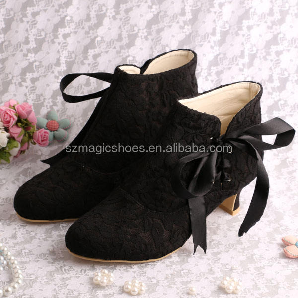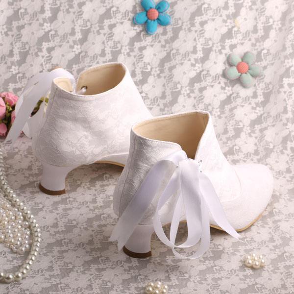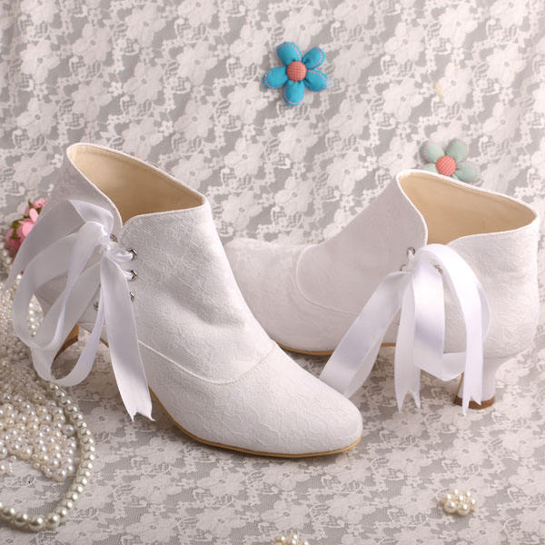 Stivali Bianchi in Pizzo da Sposa con Tacco Basso