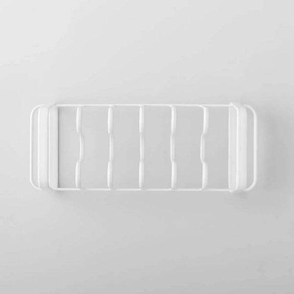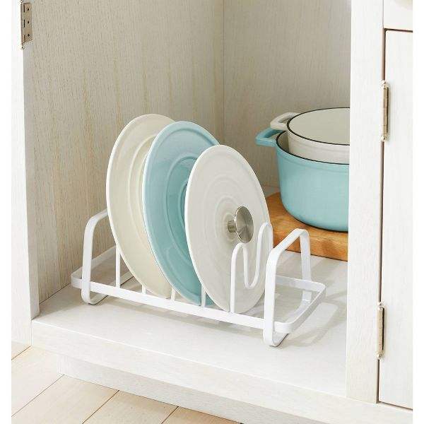 Organizzatore per coperchi in filo metallico bianco, profondità 13,5 pollici, porta pentole e padelle in ferro per armadietto da cucina