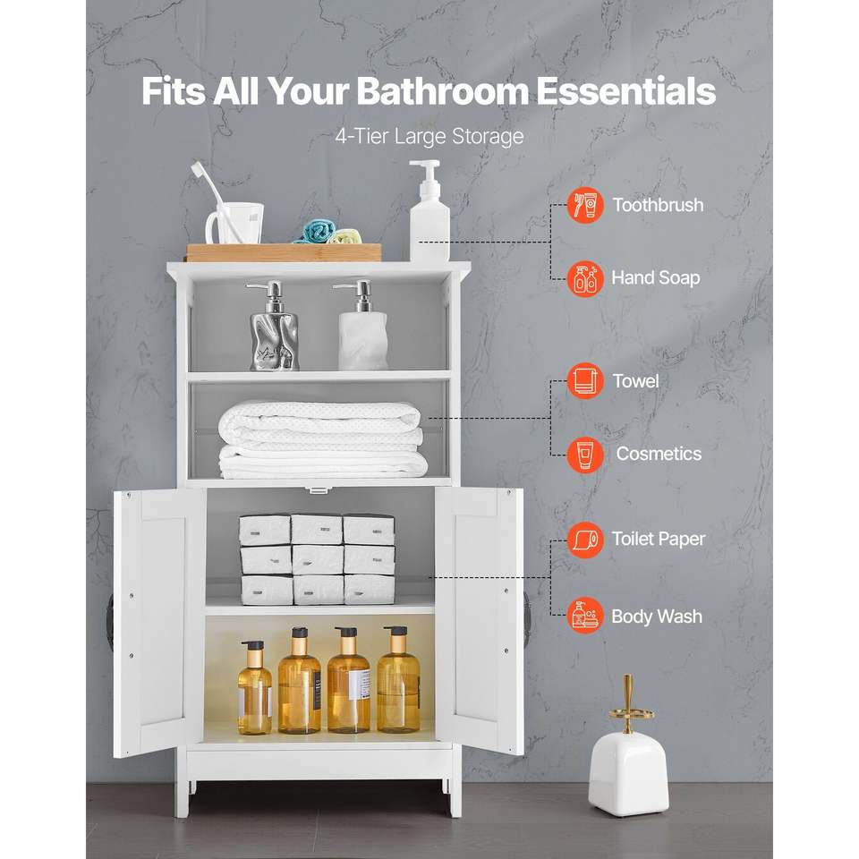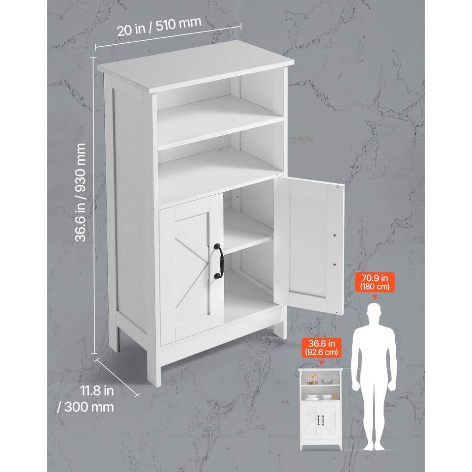White Wooden 2-Door Bathroom Floor Cabinet with Adjustable Shelf Storage Furniture