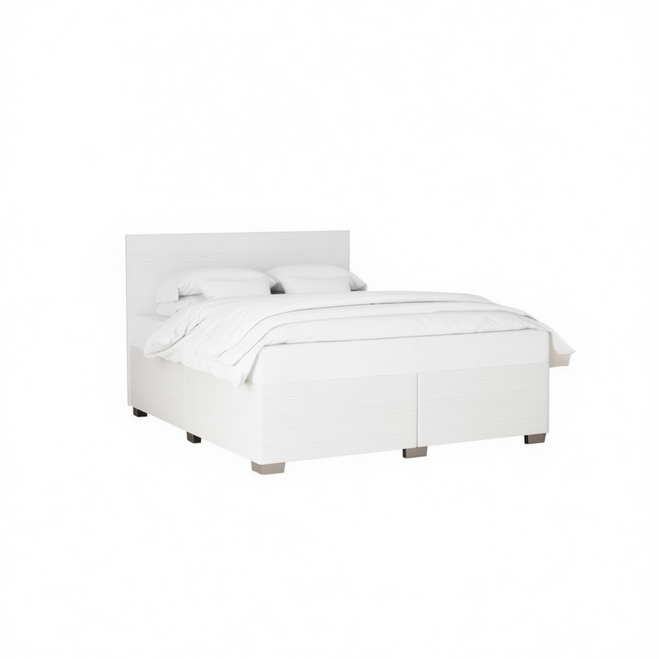 Struttura letto in legno bianco, design minimalista, con testiera contenitore, misura Queen, per camera da letto