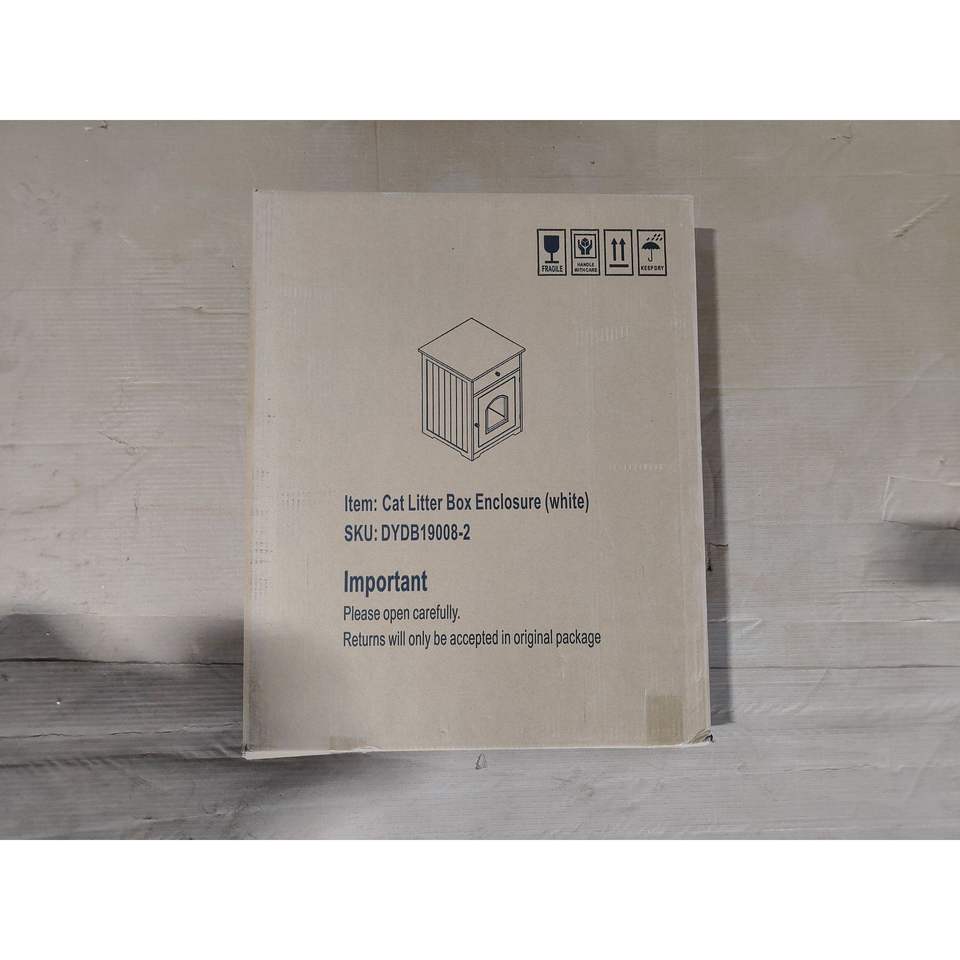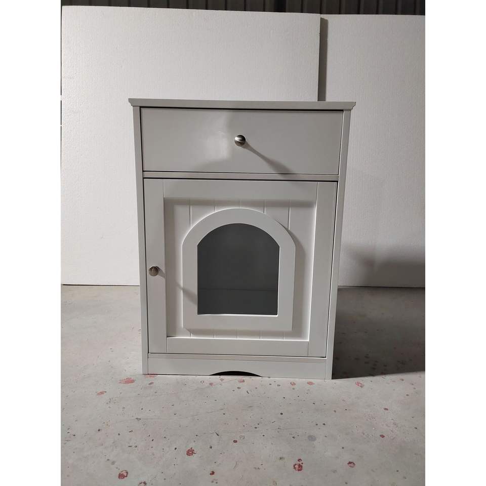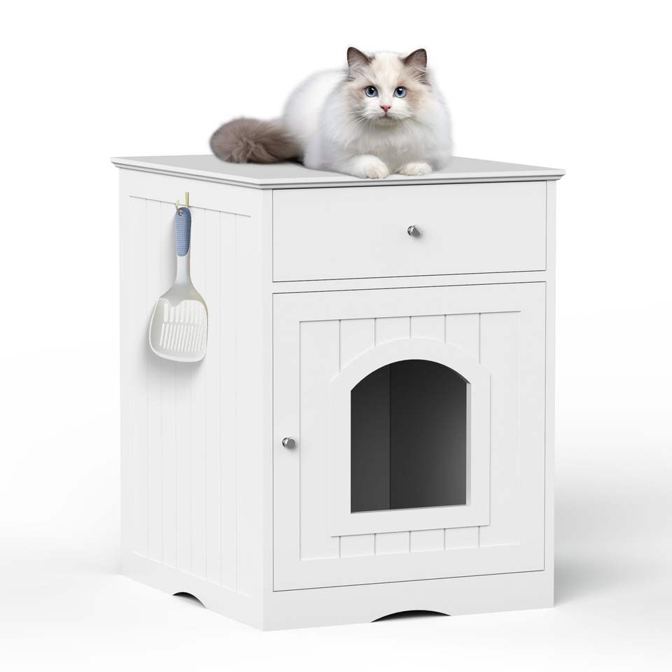 Mobiletto Contenitore per Lettiera Gatti in Legno Bianco con Cassetto, Tavolino Laterale e Comodino per Animali Domestici da Interno