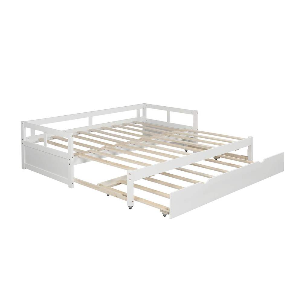 Letto in legno bianco con letto estendibile a rotelle con bagagliaio nascosto