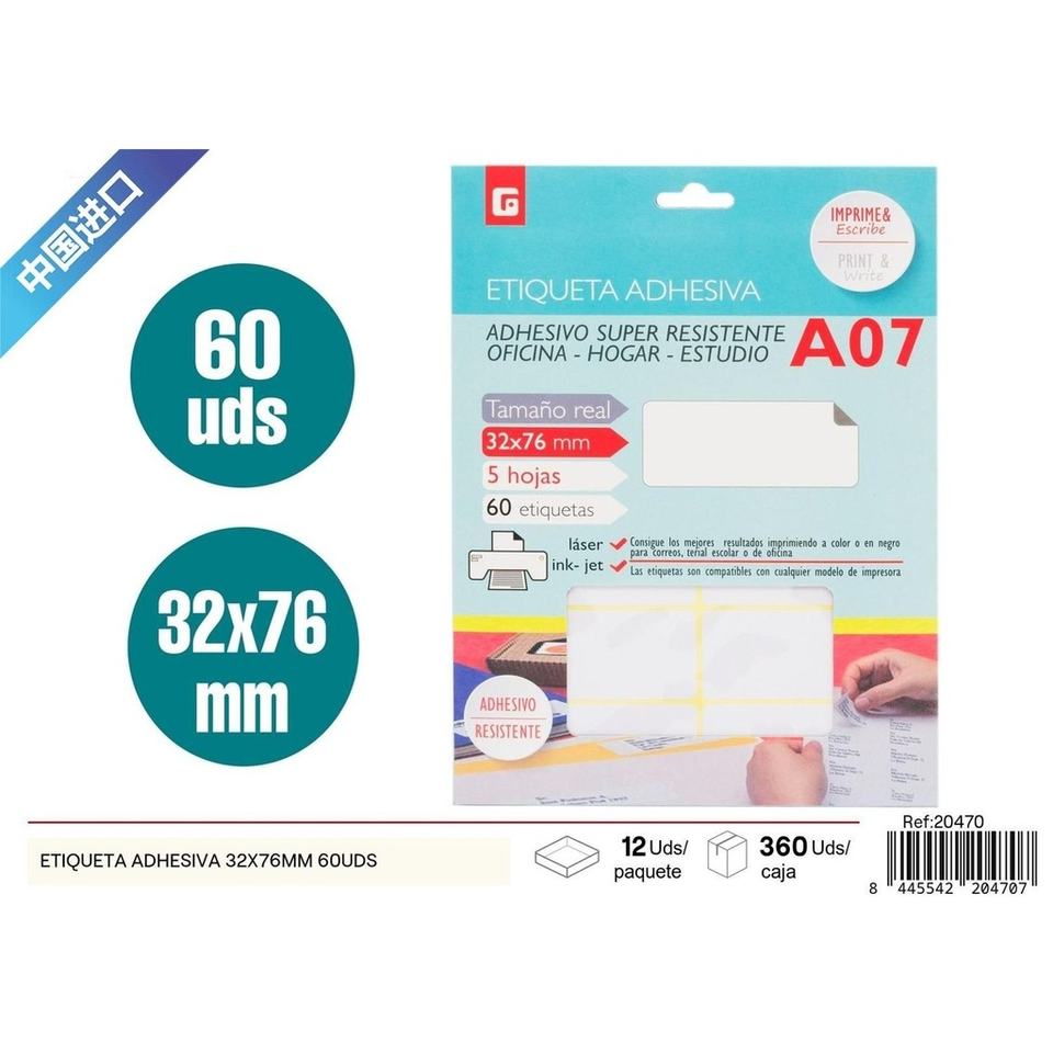 White adhesive labels 32x76mm (60 pcs) - Office Supplies