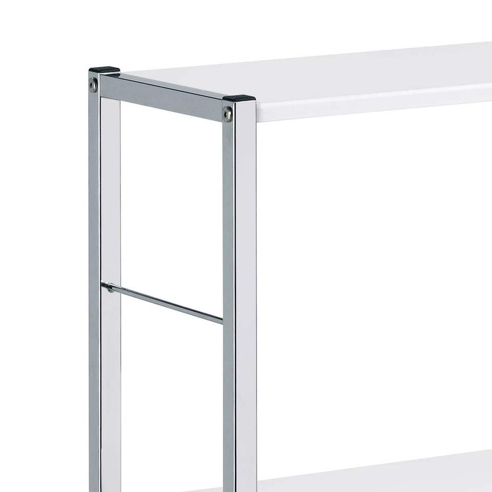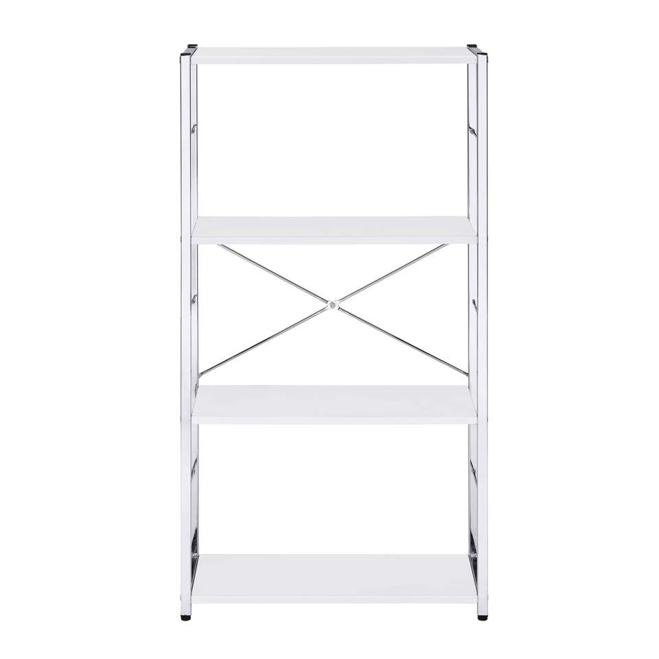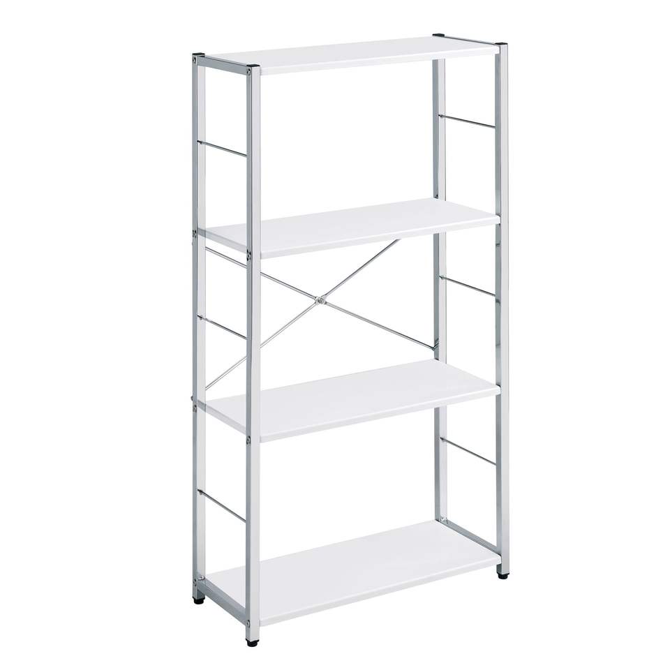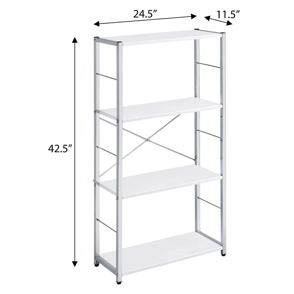 White and Chrome 4-Tier Rectangular Bookshelf Stylish Bookcases & Bookshelves