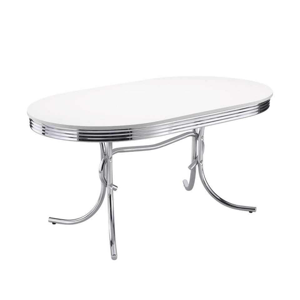Tavolo da Pranzo Ovale Bianco e Cromato