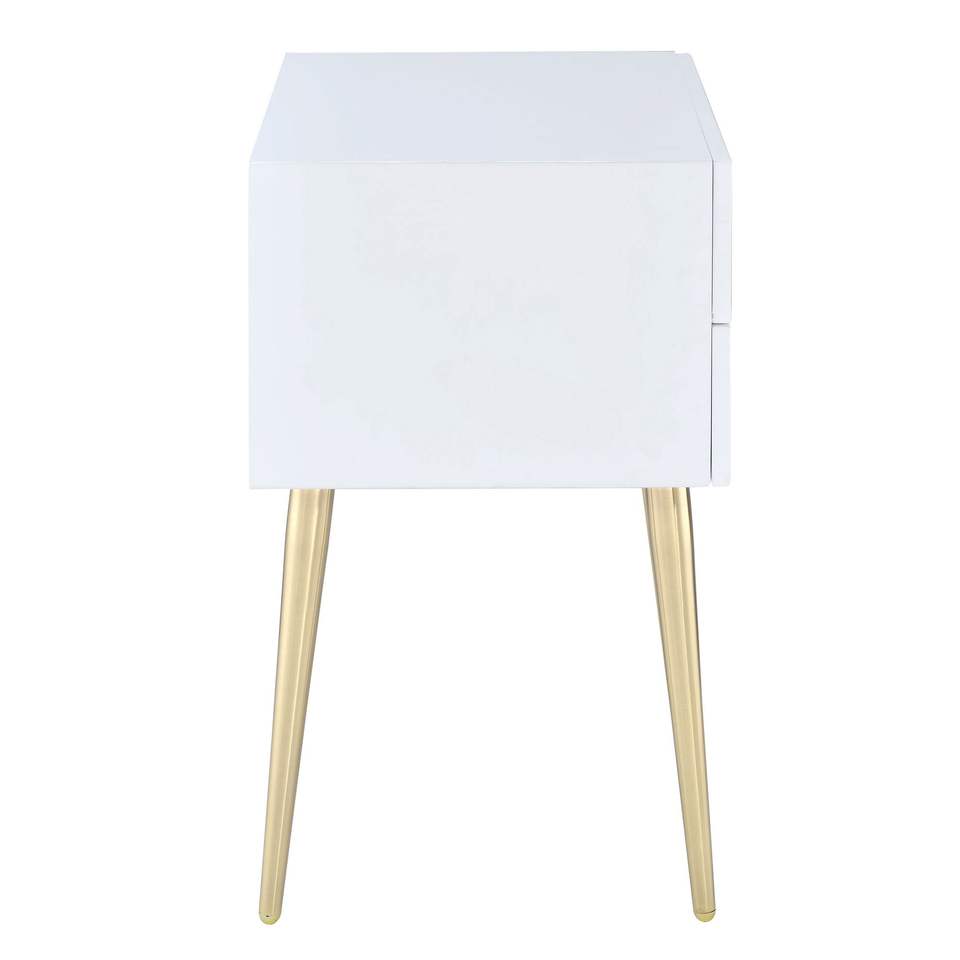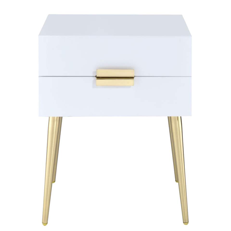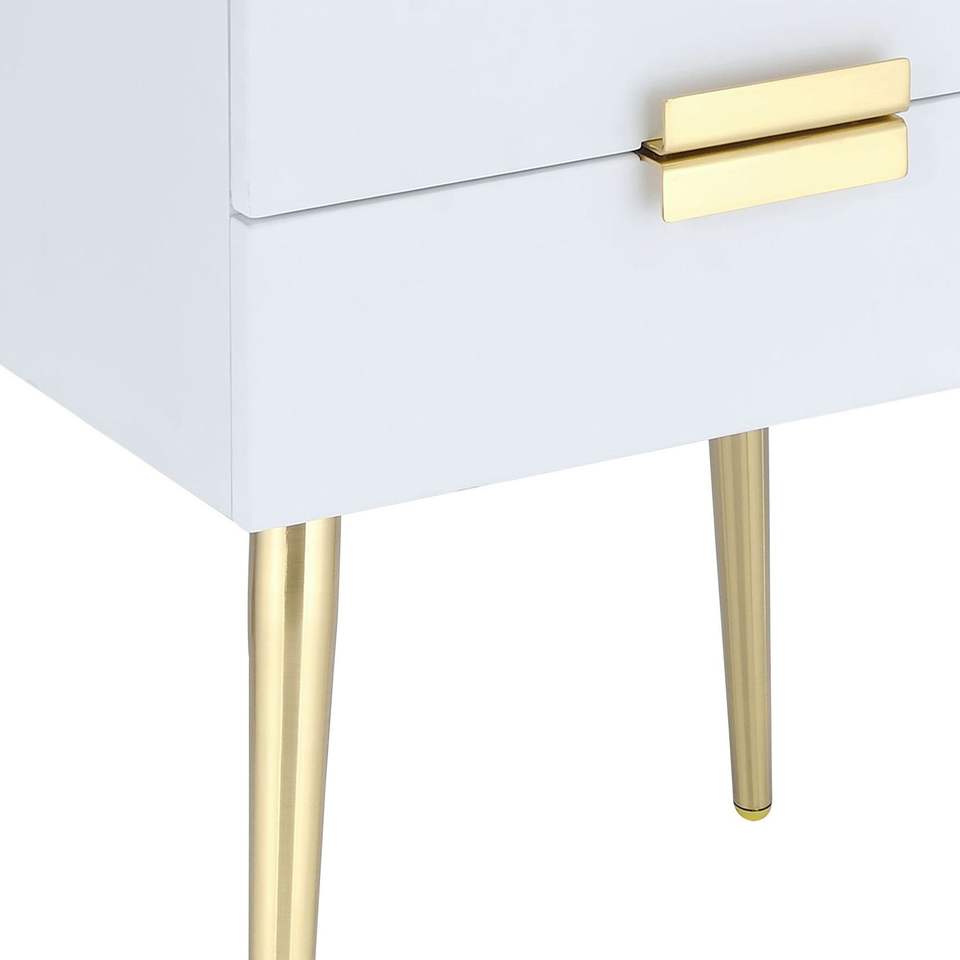 Comodino Bianco e Oro a 2 Cassetti, Elegante Tavolino per Arredamento Camera da Letto