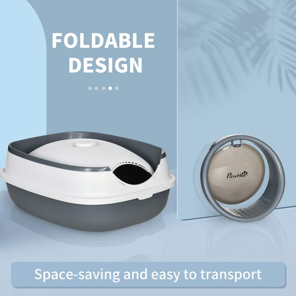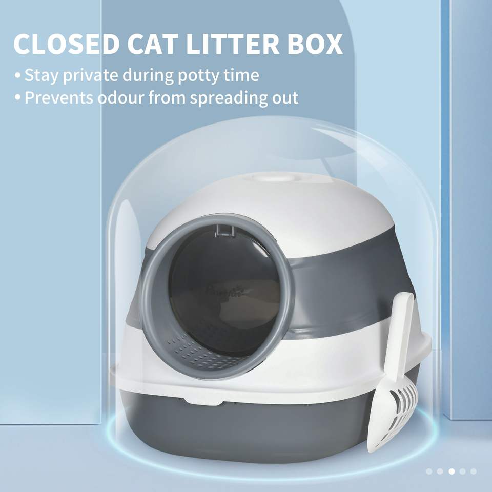 Lettiera per Gatti Coperta a Cupola Bianca e Grigia con Coperchio - Accessori Premium per Lettiera e Gatti