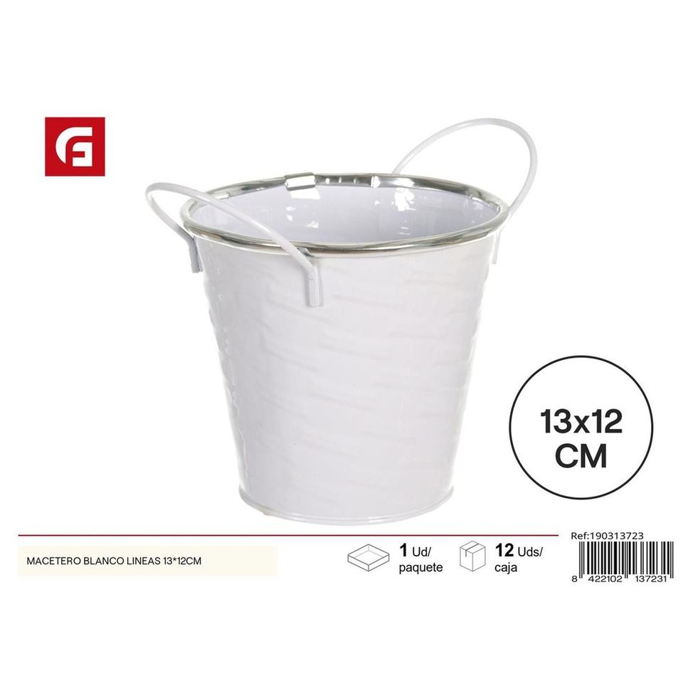 White flowerpot with lines 13x12 cm - Garden decoration