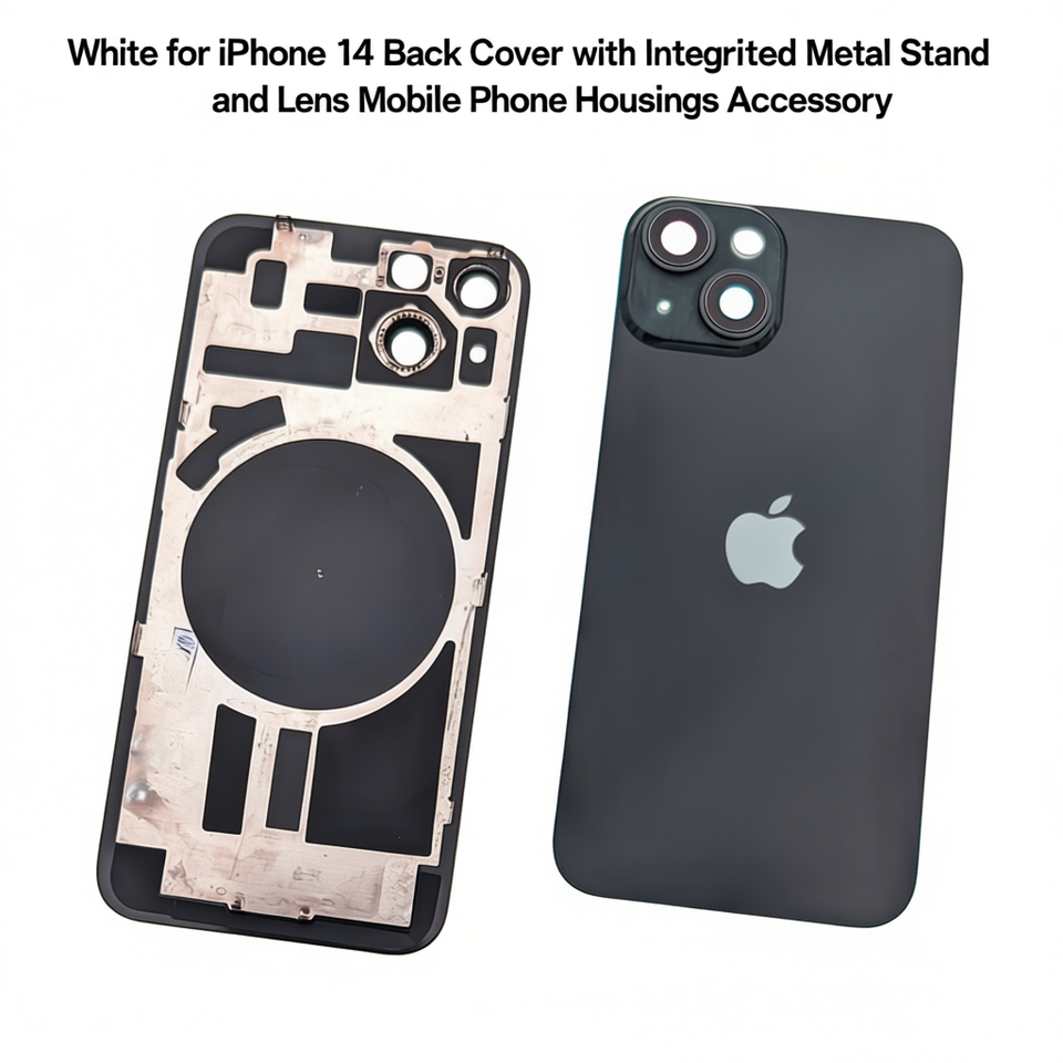 Cover Posteriore Bianca per iPhone 14 con Supporto in Metallo Integrato e Protezione Lenti, Accessorio per Telefoni Cellulari