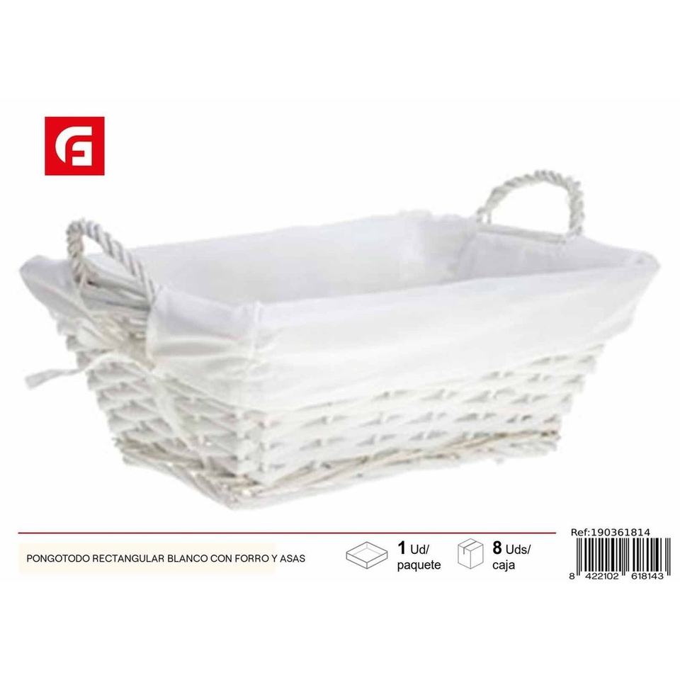 Cesto rettangolare bianco con fodera e maniglie-accessori decorativi