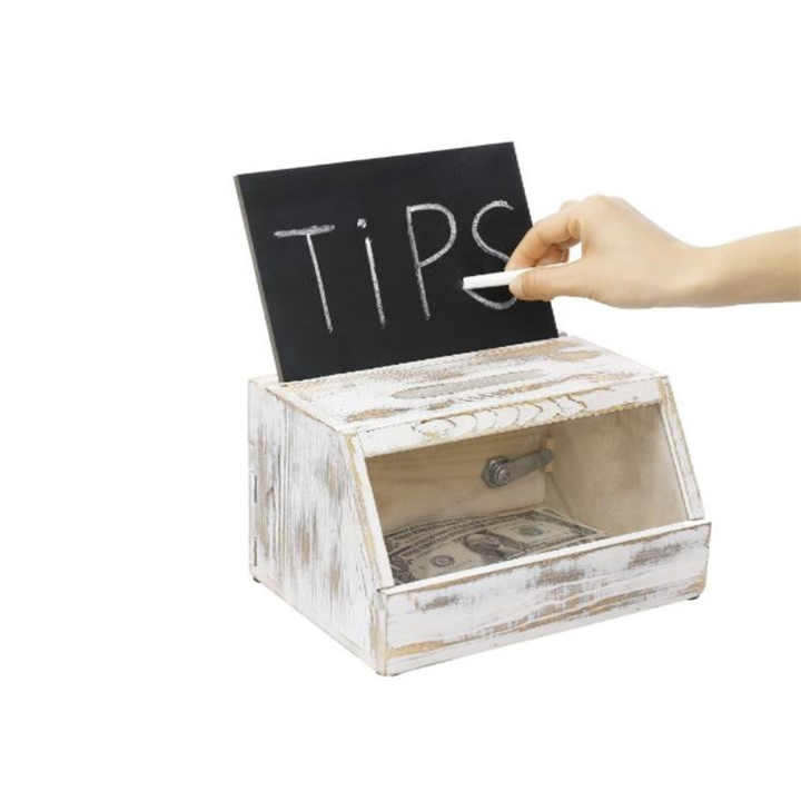 Scatola di suggerimenti per la raccolta di legno imbiancata lucidata con pannello della finestra anteriore e segno della lavagna