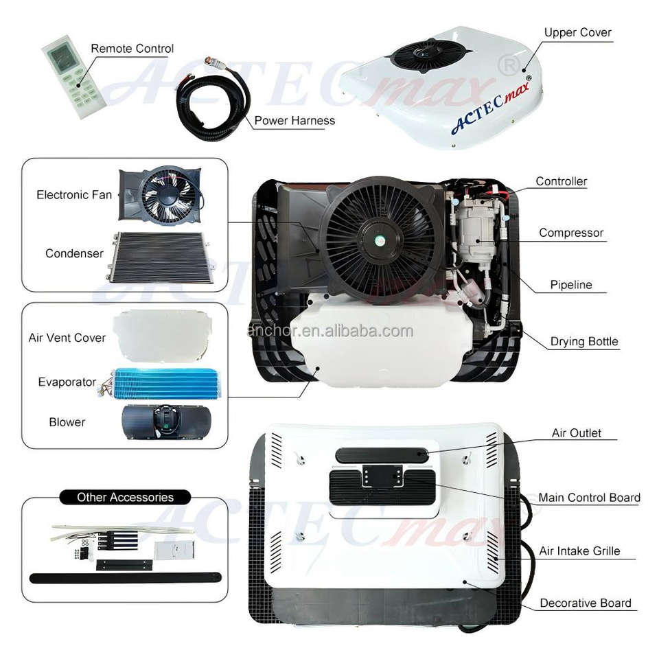 Condizionatore d'aria completo per tetto di cabina camion 24V 12V AC.161.128 RH68 R134a, climatizzatore da parcheggio automatico per trattori, camper e furgoni