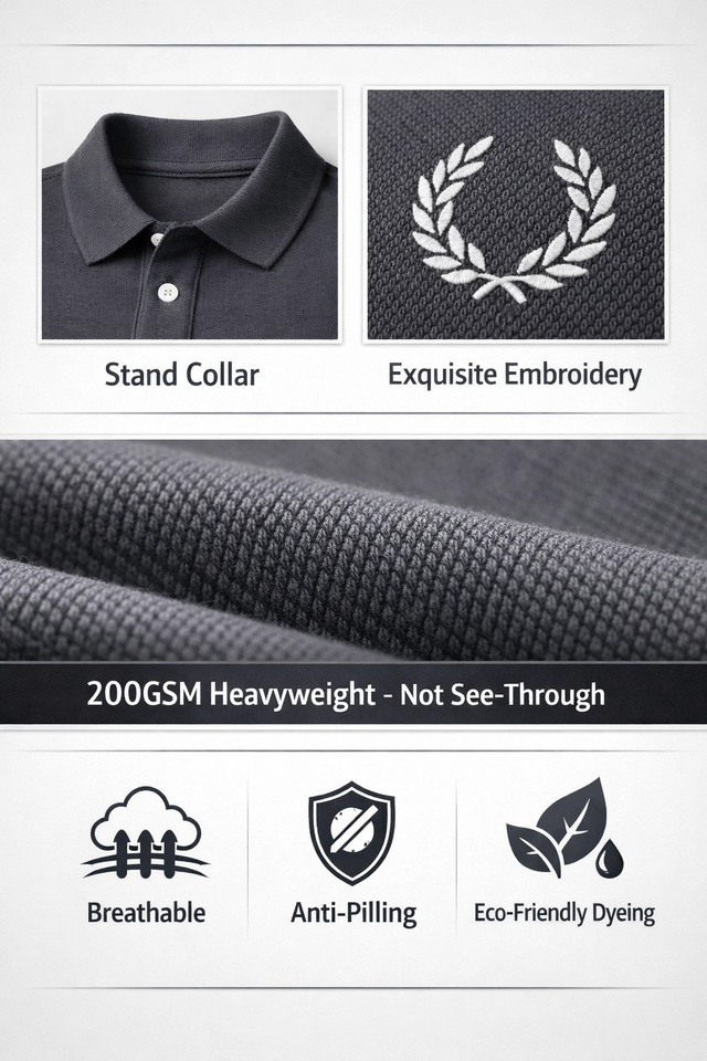 Polo con Colletto Rialzato in Cotone 100% Pesante 200GSM con Logo Personalizzato per Uomo, T-shirt Polo da Golf Premium con Ricamo