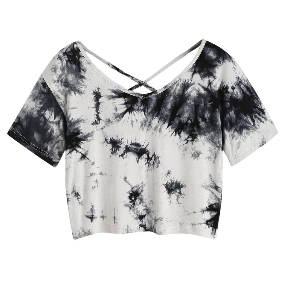 Item name:women's tie dye short sleeve v neck crop top