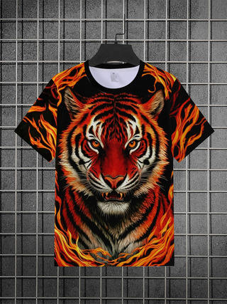 Wholesale 100% Polyester Digital Printing Jersey Tiger T-shirt Casual Streetwear Custom Design Print Pattern Men's 180g