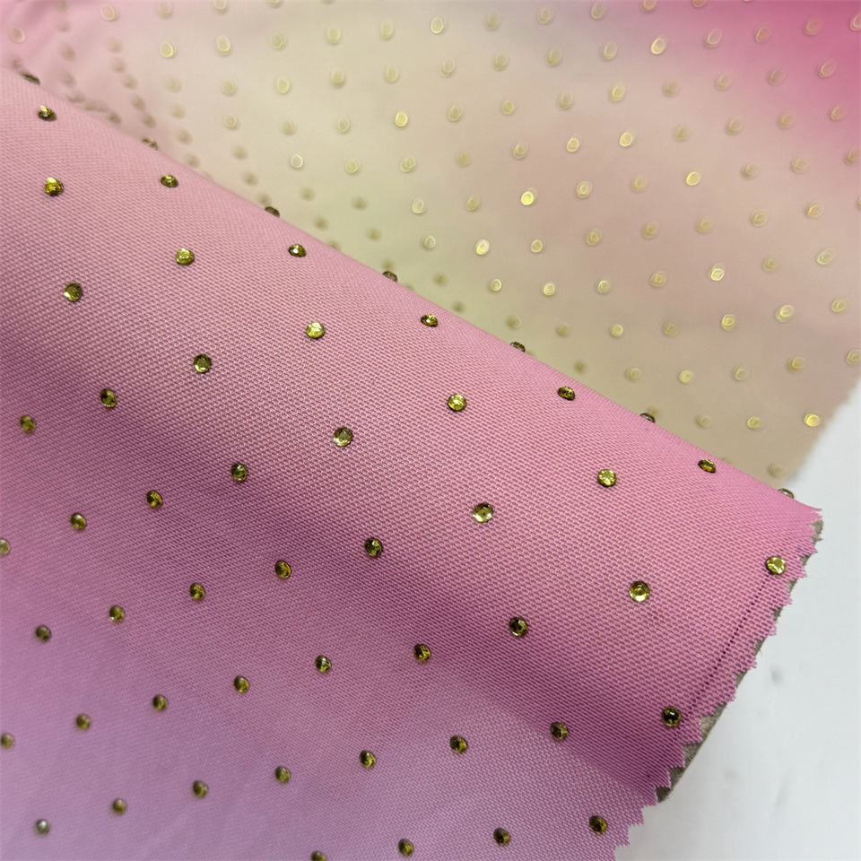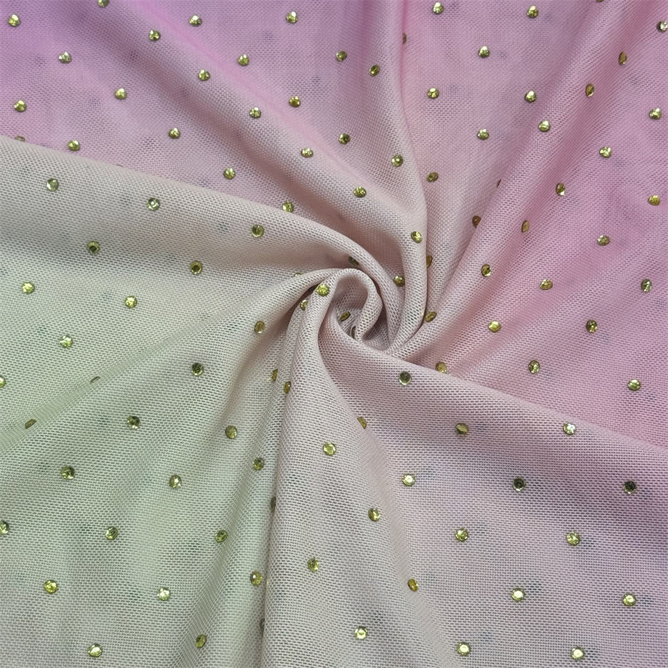 Wholesale 100% Polyester Stretch Mesh Net Lace Fabric Breathable Rainbow 3D Diamond Print Pink Color Women's Dressing