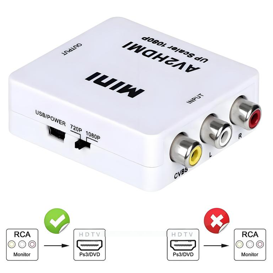 Commercio all'ingrosso 1080P Audio Video 3 inca Mini Av2hdmi convertitore composito CVBS 3RCA VGA AV RCA a HDTV HD adattatore per HDMI vecchia TV