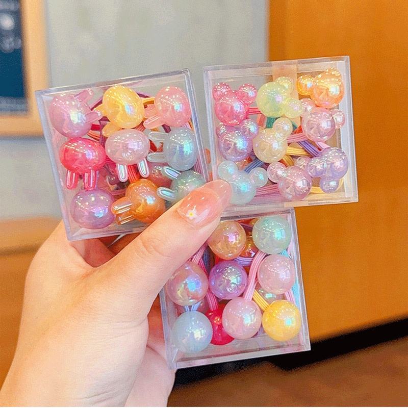 Wholesale 10PCS Candy Colors Cute Elastic Hair Bands for Girl High Ponytail Holder for Kids Hair Ties with Box