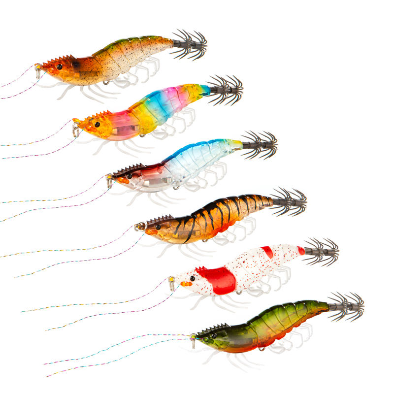 Wholesale 10g 15g 8cm Slow Sinking Saltwater ABS Luminous Wood Shrimp Artificial Squid Jig Lures, Quality Squid Jigs