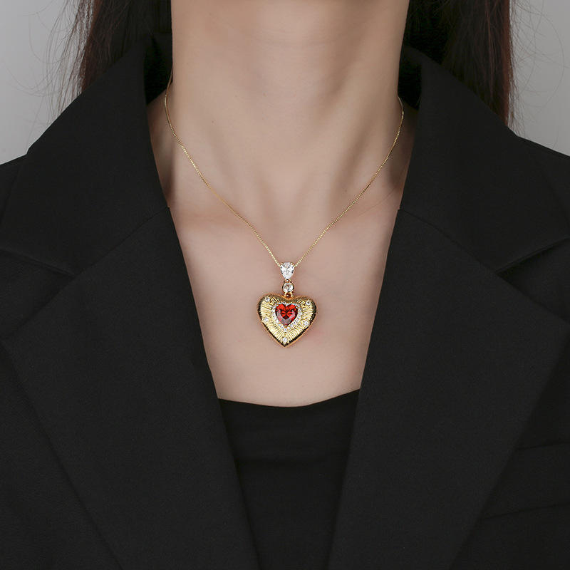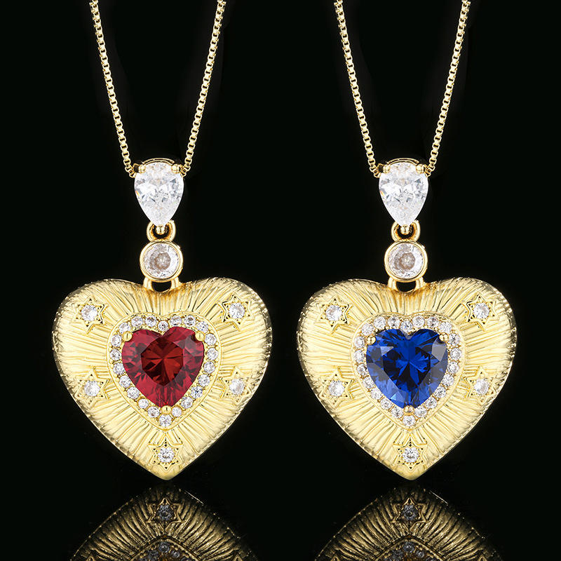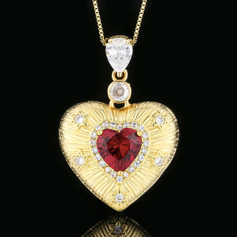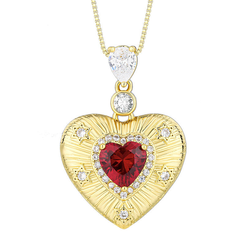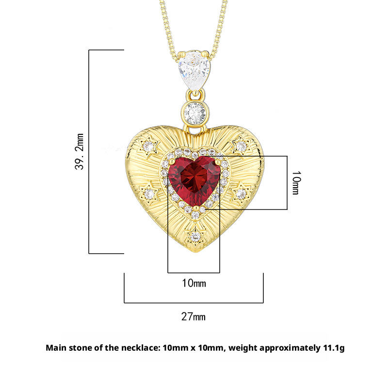 Collana con Ciondolo a Cuore in Zirconia Cubica Rossa da 10mm, Placcata in Oro su Rame Ecologico, per Uso Quotidiano Femminile