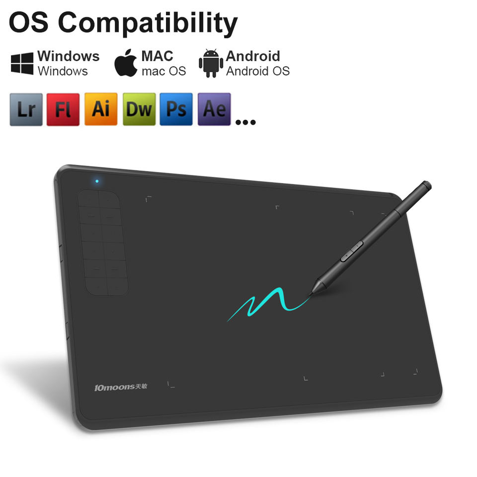 Tavoletta Grafica Digitale 10moons NEW G12 Pad per Designer, Tablet da Disegno con Penna Digitale