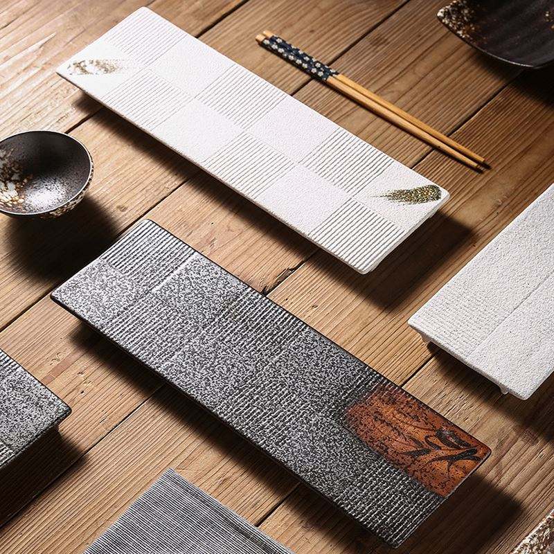 Ingrosso 12.5 pollici piatto rettangolare in ceramica stile retrò hotel servizio 50 pz Sushi Sashimi piatto piatto piatto a strisce lunghe