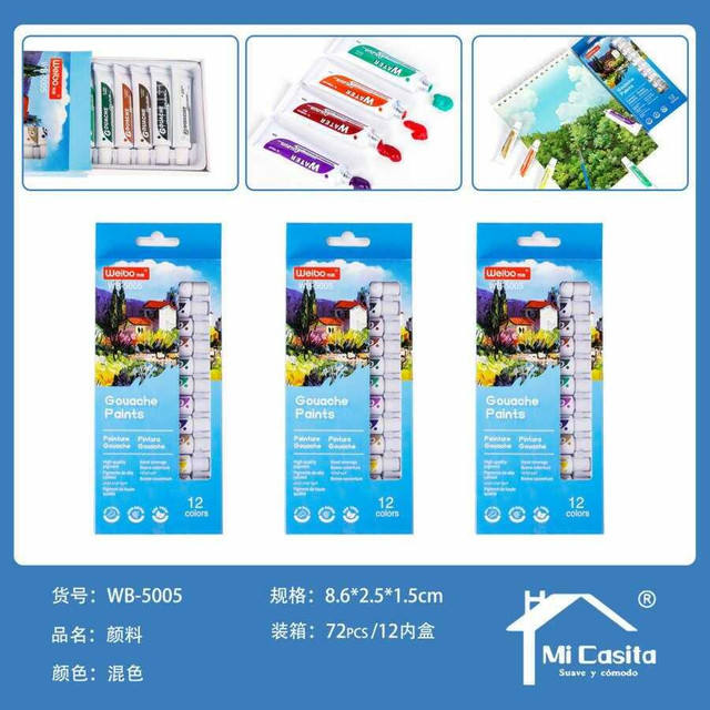 Wholesale 12 Color Gouache Watercolor Paint Set 72 Pieces Per Box for Artists and Students on Canvas Paper Glass