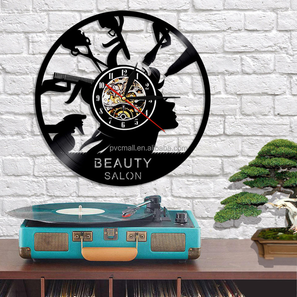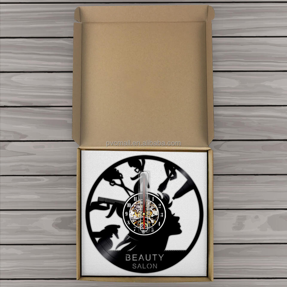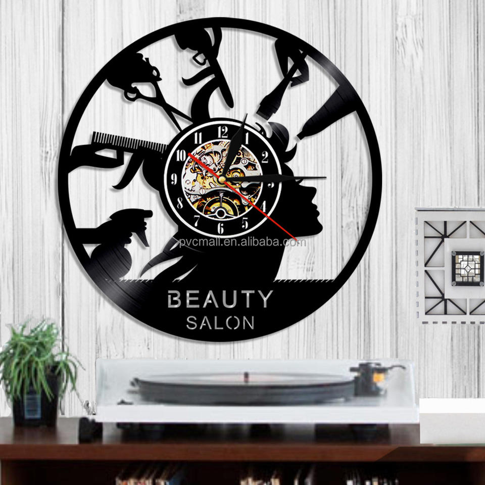 Ingrosso 12 pollici orologio da parete decorazione salone di bellezza decorazione in vinile nero 3D decorazione moderna orologio da parete con luci a LED