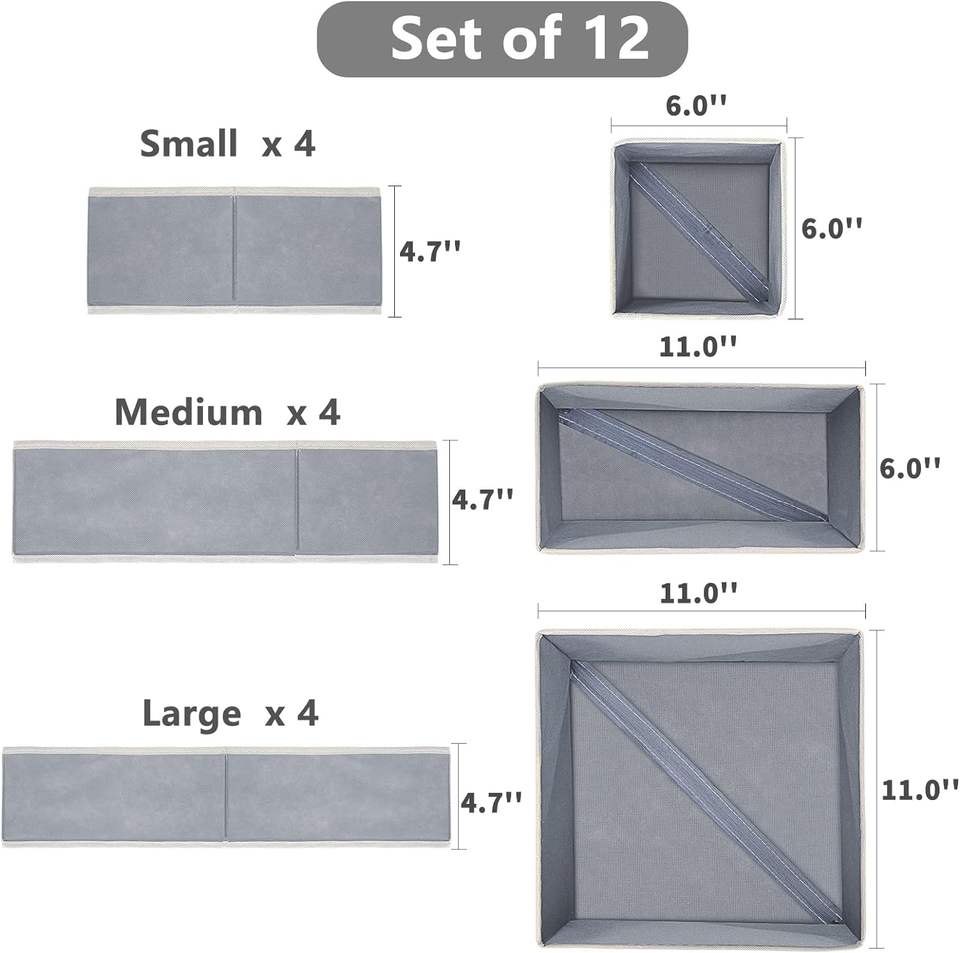 Ingrosso 12 pezzi come un Set pieghevole in tessuto cassettiera organizzatore contenitori di stoccaggio per abbigliamento scatola di immagazzinaggio