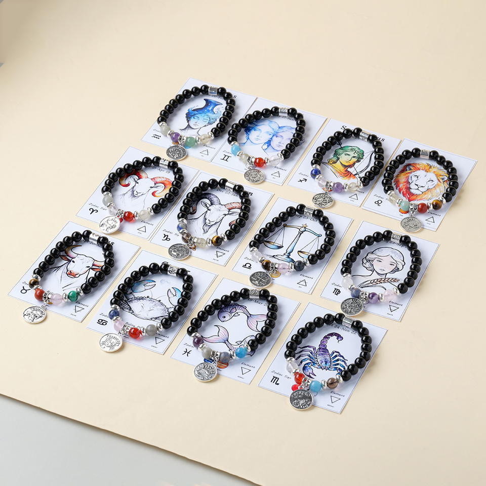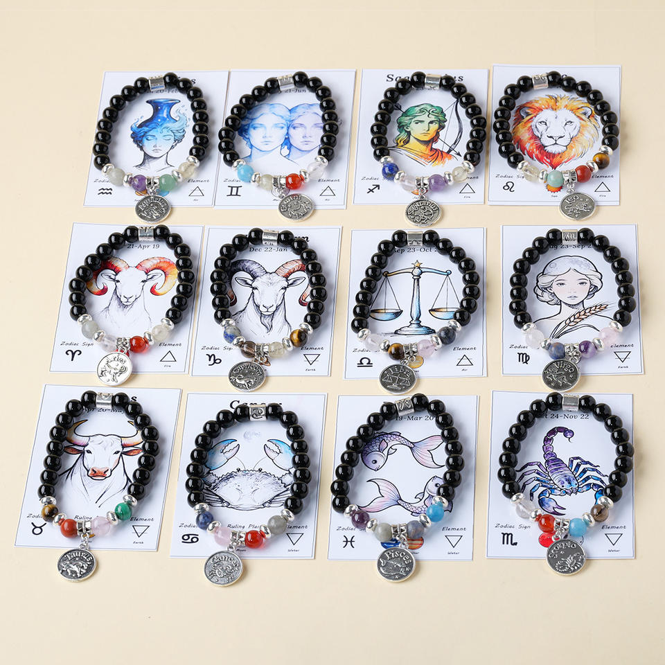 Model Number:12 Zodiac Sign Black Obsidian Bracelet