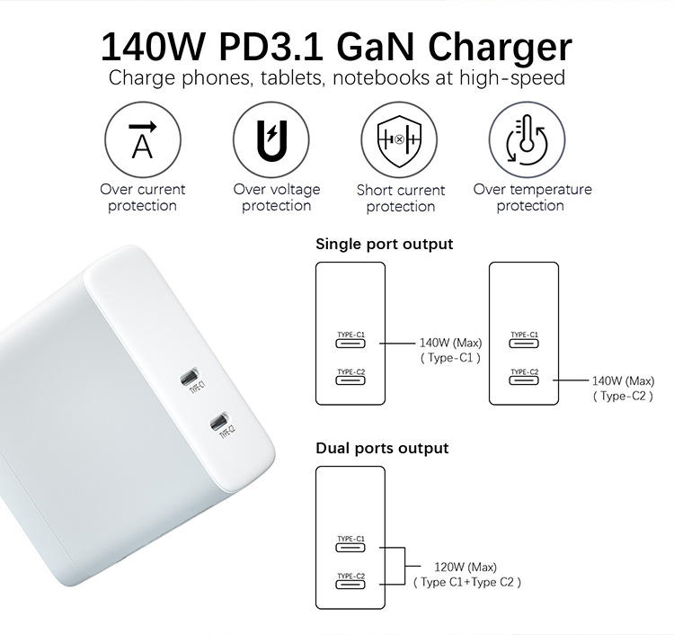 Type-C2(pd):5V/3A, 9V/3A, 12V/3A, 15V/3A, 20V/5A, 28V/5A(140W Max)