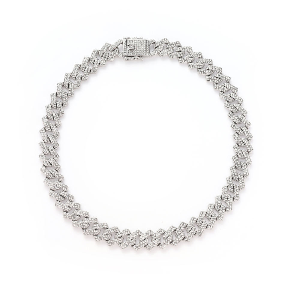 Yiwu Renqing Ornament Choker a catena Miami Cuban 15 mm in lega con strass, ciondolo iced out diamantato, 1 pz (mod. NL2111)