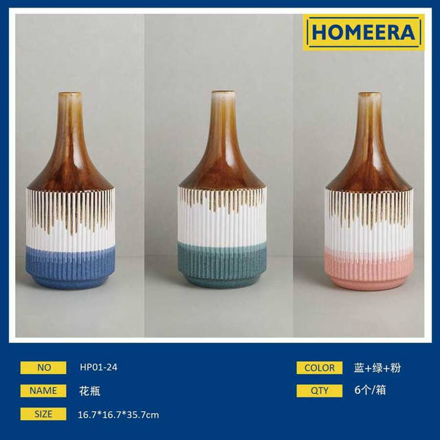 Wholesale 167x167x357cm Ceramic Vase with Colorful Striped Design for Tabletop or Floor Decoration in Home