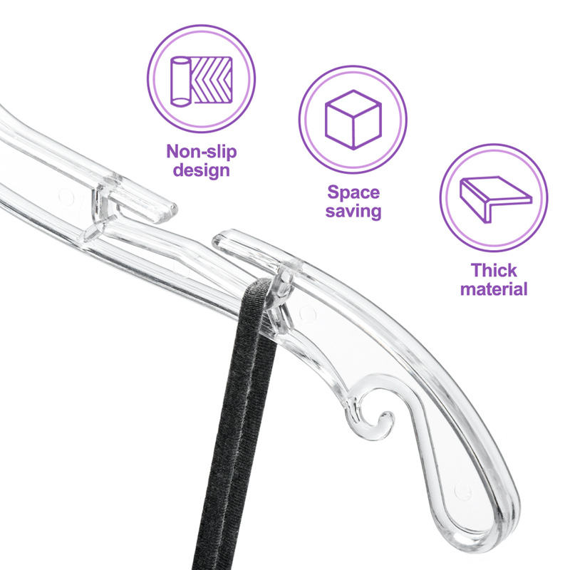 Wholesale 17" Clear Cloths Transparent PS Thick Plastic Shirt Dress Hangers for Clothes