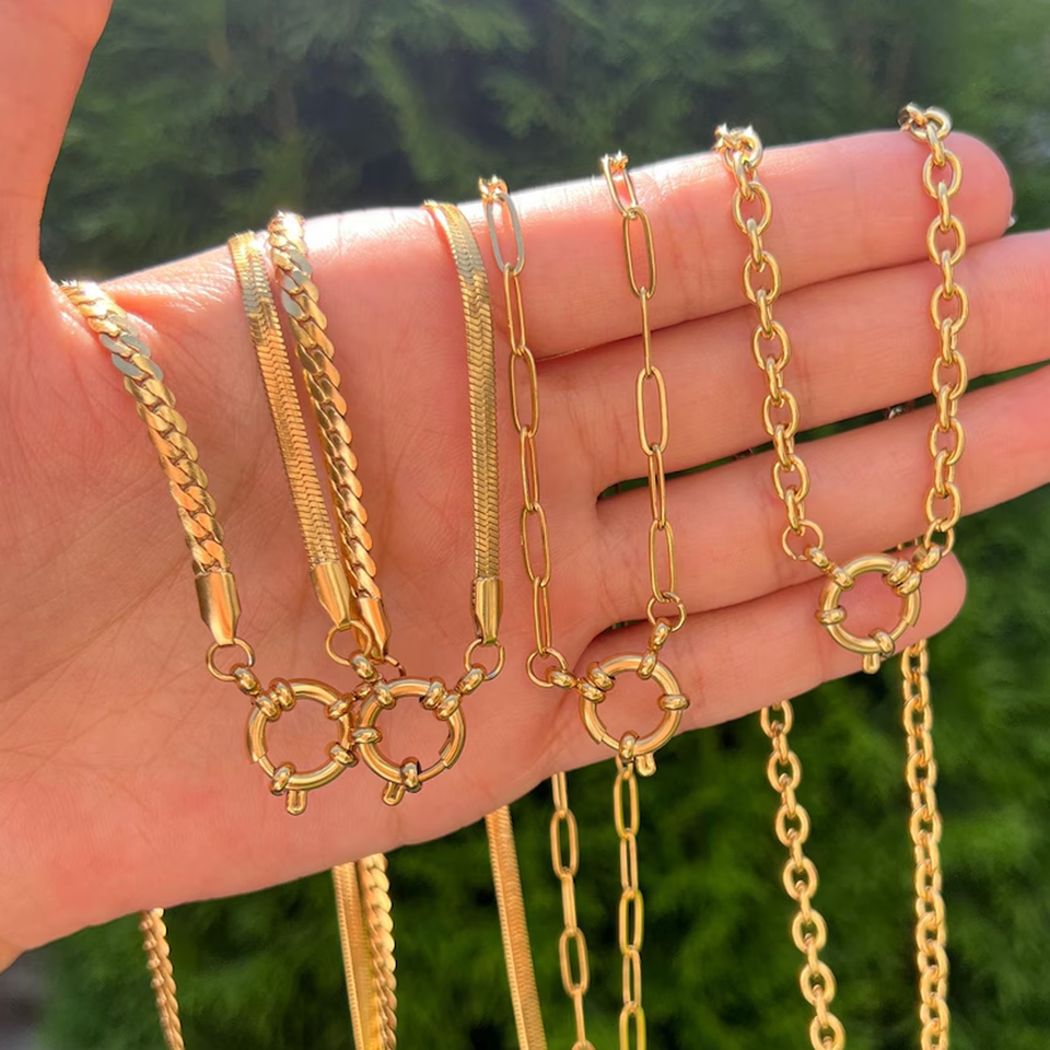 Collana Girocollo da Donna All'Ingrosso con Catenina a Serpente, Figaro Sottile, a Corda, Veneziana e a Graffetta in Acciaio Inossidabile Impermeabile con Placcatura PVD in Oro 18K