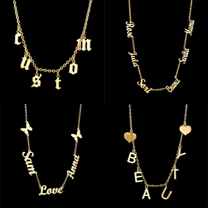 Commercio all'ingrosso oro placcato oro 18K collana Multi-femminile nome scritto a forma di lettera che caratterizza perla come pietra principale