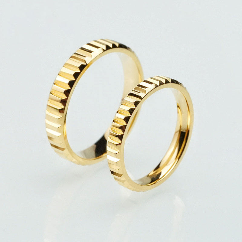Wholesale 18K Gold Plated Stainless Steel Couple Rings Fluted Ridged Edge Wedding Band His and Hers