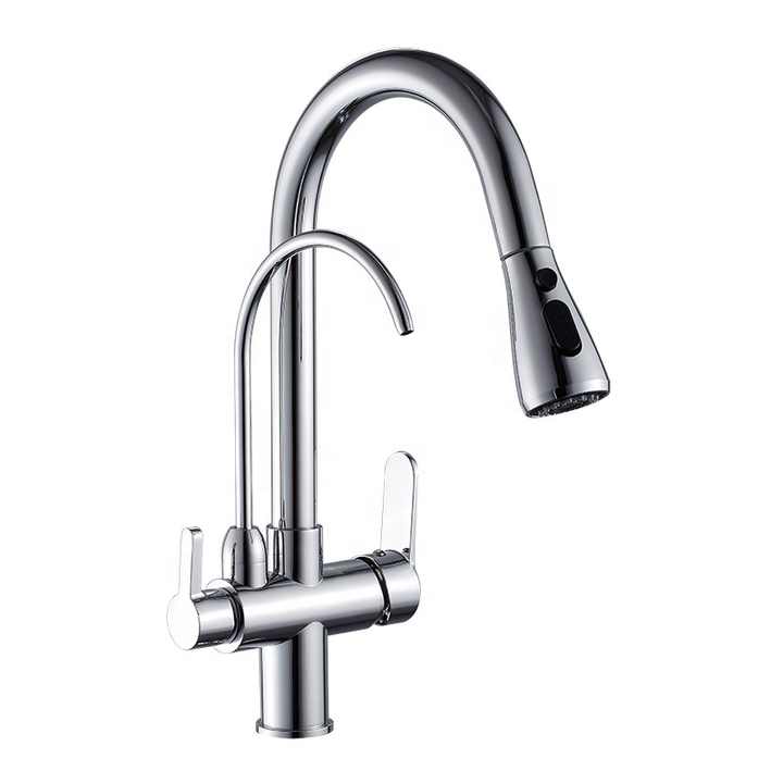 Wholesale 2 Handles 3 in 1 Modern Pull Down Sprayer Sink Faucet Kitchen Tap With Purified Water