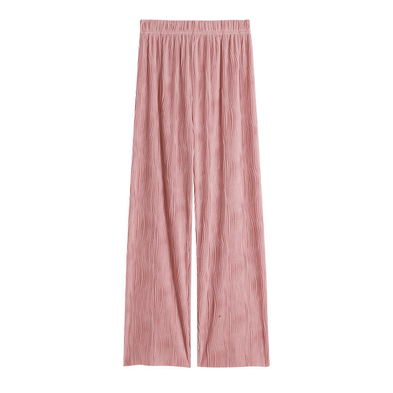 Pantaloni lunghi casuali delle ragazze dei pantaloni diritti allentati pieghettati Moire a vita alta elastici della vita delle donne all'ingrosso 2022